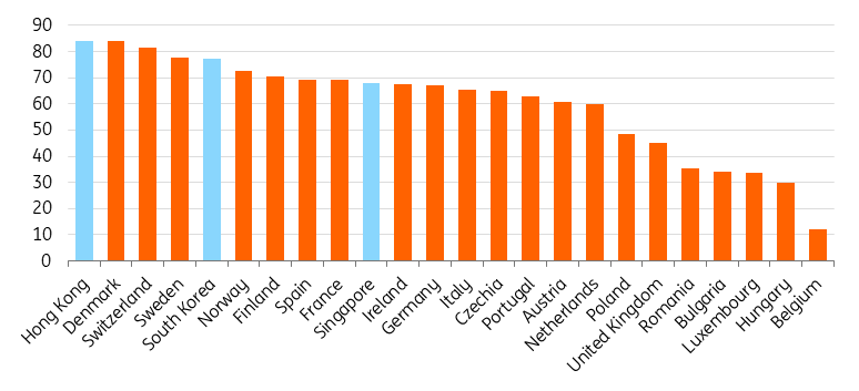 Tuttavia, Hong Kong e la Corea del Sud dispongono già di un’elevata disponibilità di reti 5G e sono quindi ben posizionate per beneficiare di nuovi servizi innovativi. Non siamo riusciti a trovare dati sulla Cina, ma le reti 5G autonome sono già operative su larga scala, a dimostrazione della leadership tecnologica della Cina.