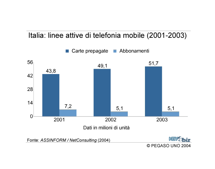 Italia: Linee attive di telefonia mobile (2001-2003)