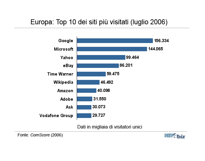 Europa: Top 10 dei siti più visitati (luglio 2006)