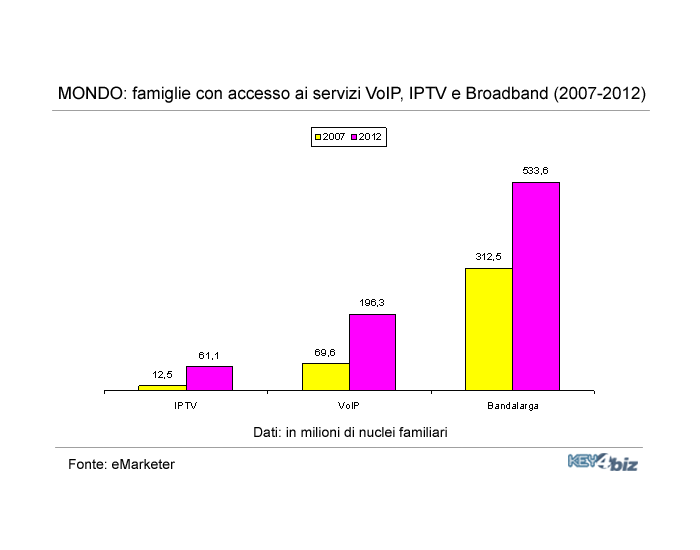 MONDO: famiglie con accesso ai servizi VoIP, IPTV e Broadband (2007-2012)