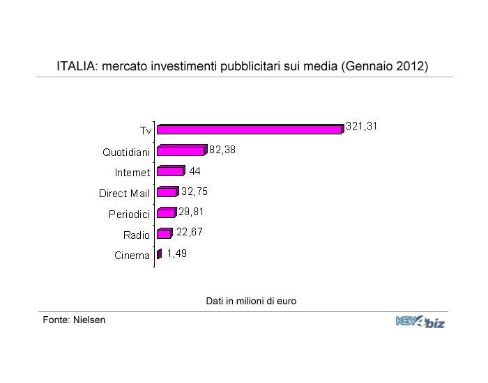 ITALIA: mercato investimenti pubblicitari sui media (Gennaio 2012)