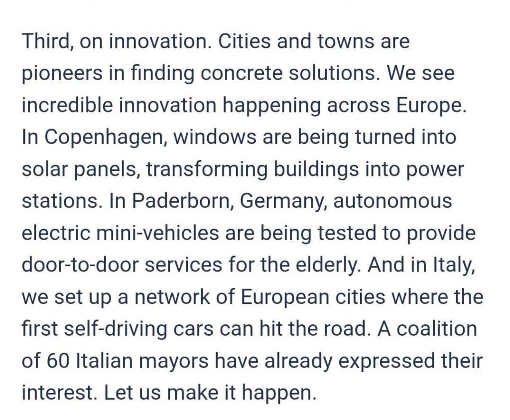Non è la prima volta che la Presidente von der Leyen chiama in causa i 60 sindaci italiani, pronti a testare la guida autonoma sul loro territorio.