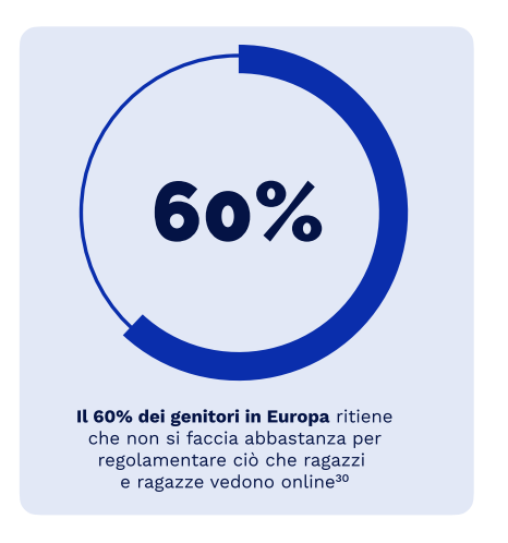 Sebbene i genitori ritengano spesso esagerati i timori legati al digitale, quasi la metà ammette di non sapere davvero a cosa siano esposti i propri figli online. In Italia, solo il 34% dei genitori è consapevole dei rischi reali. Eppure, la Generazione Z e Alpha dimostrano maggiore lucidità: l’85% dei giovani in Europa è consapevole del rischio di fake news e contenuti manipolati. Restano però delle lacune: solo il 36% degli insegnanti italiani incoraggia abitualmente a verificare i fatti (contro il 60% dell’Austria e il 58% della Spagna) e il 53% afferma che gli studenti non sanno distinguere tra vero e falso. Un segnale chiaro che l’educazione digitale va rafforzata, a scuola e in famiglia.