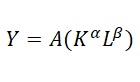 La sua rappresentazione è una funzione matematica (del tipo Cobb e Douglas), dove Y è l’output (i servizi bancari), A un multi-fattore di produttività (connesso al progresso tecnico), K lo stock di capitale tecnologico, L il lavoro (ridotto al minino) e α e β le quote distributive del reddito che vanno ai profitti (massimizzati) e ai salari (minimizzati).