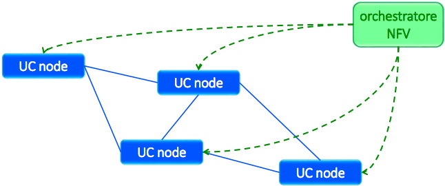Una rete con queste caratteristiche può essere sviluppata grazie ad un modello architetturale innovativo come il Software Defined Networking (SDN) e grazie anche ad un nuovo modo di sfruttare le funzionalità degli apparati di rete come il Network Function Virtualization (NFV). Questi due concetti — se pur indipendenti — sono strettamente legati tra di loro e, come vedremo più avanti, portano particolari vantaggi se applicati contemporaneamente.