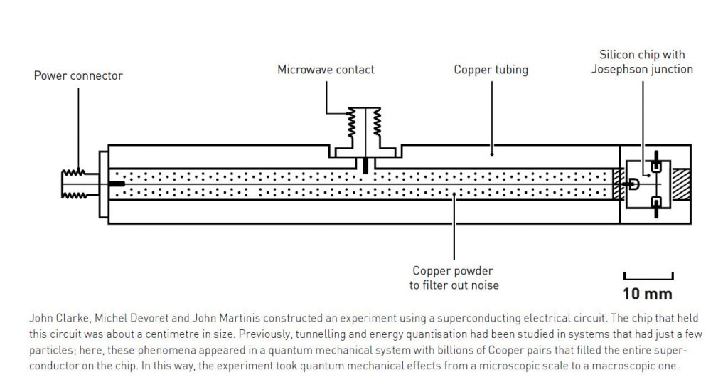 Il lavoro di Clarke, Devoret e Martinis non nacque dal nulla: fu ispirato da teorie precedenti sul tunnelling macroscopico — in particolare dagli studi del fisico Anthony Leggett, cui era riconosciuto il merito di aver esplorato la possibilità di effetti quantistici a scala estesa.