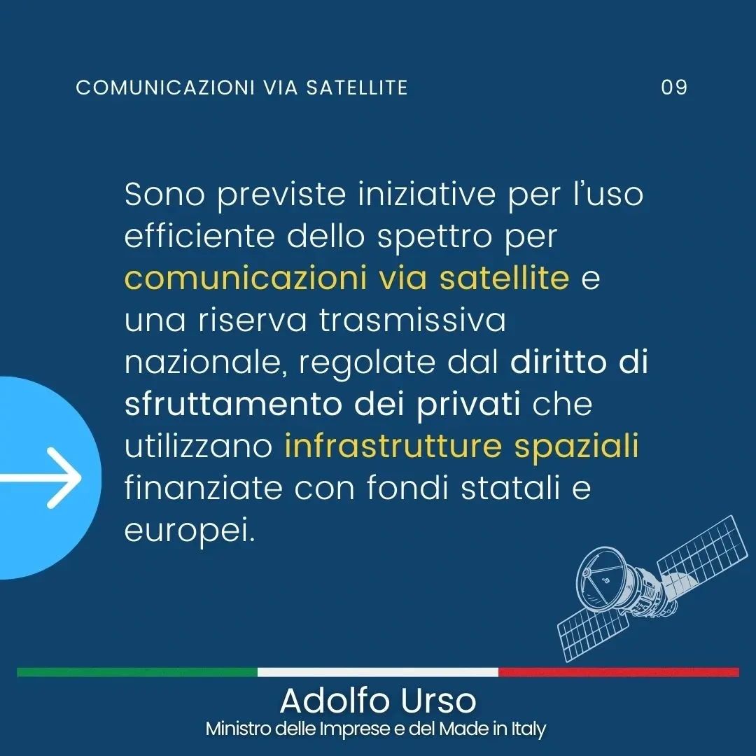 E Urso ha risposto: “Il disegno di legge sulla Space Economy non contiene una parte che riguarda le infrastrutture, in quanto tale, quindi, non riguarda né Starlink né altri progetti”.