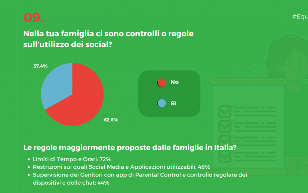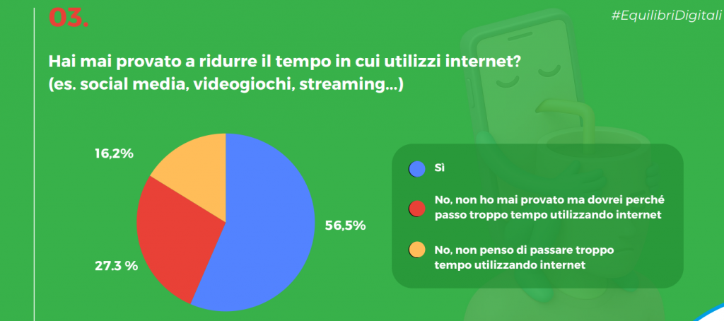 Nel 2025, questa consapevolezza si rafforza ulteriormente. Alla domanda “Credi che l’uso eccessivo dei dispositivi digitali possa influire sulla tua salute fisica o mentale?” oltre il 91% dei ragazzi riconosce un impatto diretto del digitale sul proprio benessere. Nel dettaglio: ben il 72,2% risponde che può incidere su entrambe, il 15% solo sulla salute mentale e il 4,1% solo su quella fisica. Solo l’8,7% dichiara di non vedere alcuna correlazione.
